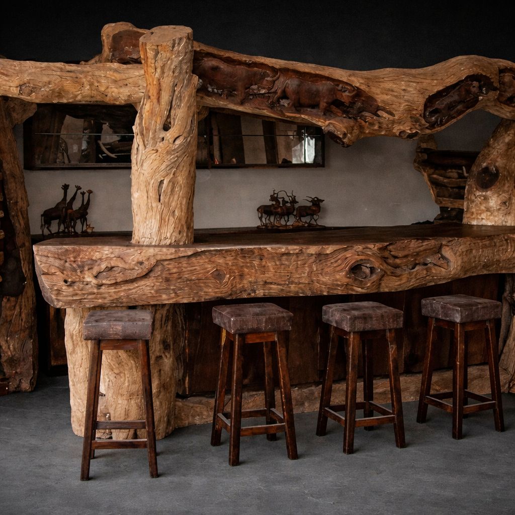 Our gallery showcases workshop processes, raw timber selection, finished installations, detail close-ups, and Bushveld lifestyle imagery.